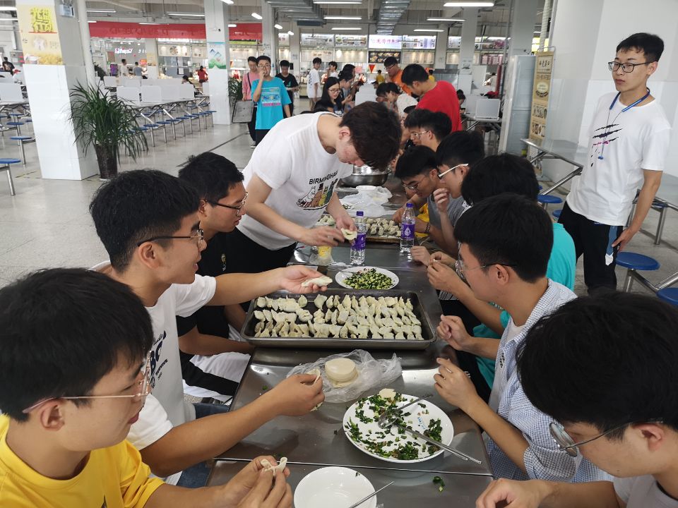 6月13-14日,党支部活动负责人提前采购了包粽子和饺子的相关食材,并组织同学们在学生食堂集合,一起动手裹粽子、包饺子。大家四人或五人一组围坐在一起,有说有笑,相互学习。拿粽叶、舀糯米,用绳捆扎熟练地包起粽子,一只只各式各样的粽子拿在手里互相欣赏,牛角形、五角形、长条形等各种的粽子瞬间成型。同时,还邀请在食堂吃午饭的同学一起品尝大家亲手包的粽子。同学们拿着包好的粽子,笑容无比灿烂,高高兴兴喜迎端午节。活动结束,志愿者们将剩余的爱心粽子和饺子打包带给寝室同学,让其他同学共同感受来自大家庭的温暖!