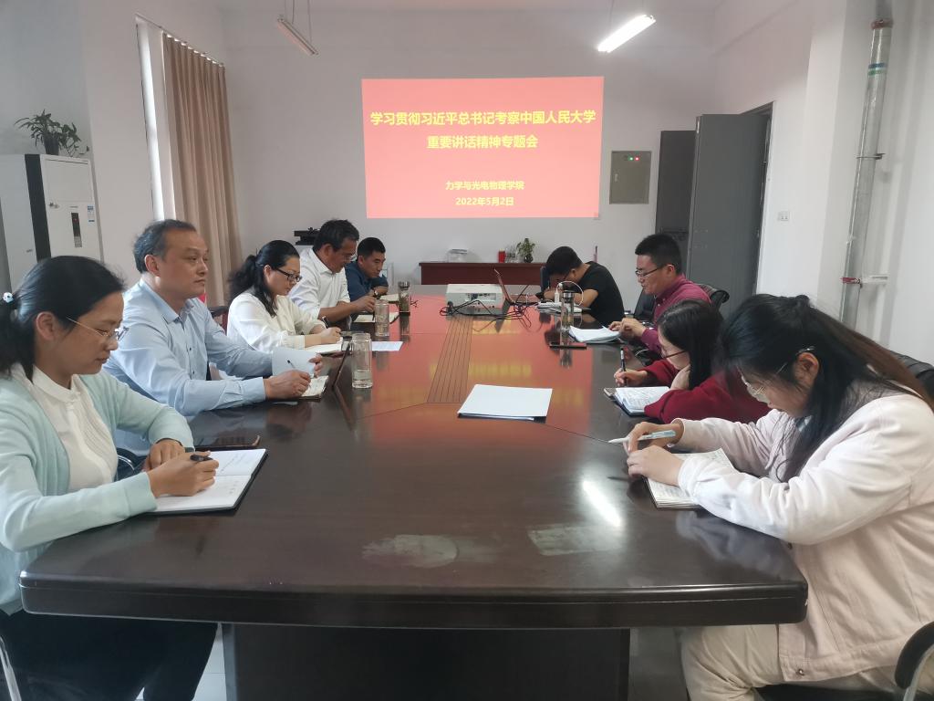 在五四青年节即将到来之际,yl23455永利官网党委通过开展党委理论中心组集中学习、线上观看视频、师生座谈交流、主题党日活动等方式,认真学习领会习近平总书记到中国人民大学考察调研时的重要讲话精神,结合各自学习工作实际分享学习感悟。师生们纷纷表示将牢记党的教诲,立志民族复兴,不负韶华,不负时代,不负人民,在实现中华民族伟大复兴的时代洪流中踔厉奋发、勇毅前进!