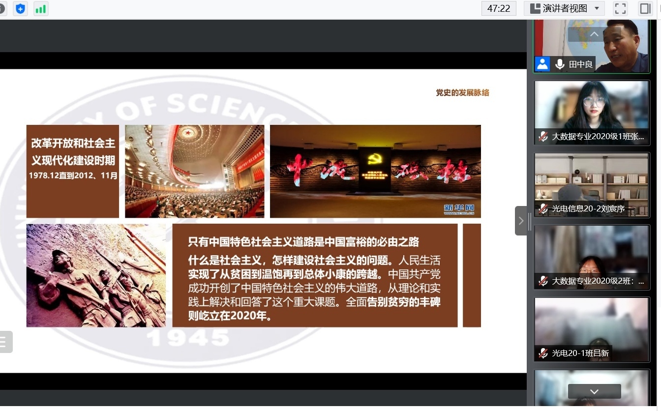 5月7日晚,在明道楼A318会议室主会场,学院领导班子成员出席开班仪式。开班在庄严的国歌中拉开序幕,党委副书记孙东升介绍本期培训班的具体安排并宣读班级管理纪律要求,党委书记刘艳代表学院党委对全体发展对象提出了期望:一要加强理论学习,坚定理想信念,筑牢自身信仰之基、补足精神之钙、把稳思想之舵;二要锤炼党性修养,端正入党动机,不仅要在思想上入党,更要在行动上时刻以党员的标准严格要求自己。三要提高站位,适应时代要求,在各方面起模范带头作用,做新时代的追梦人。